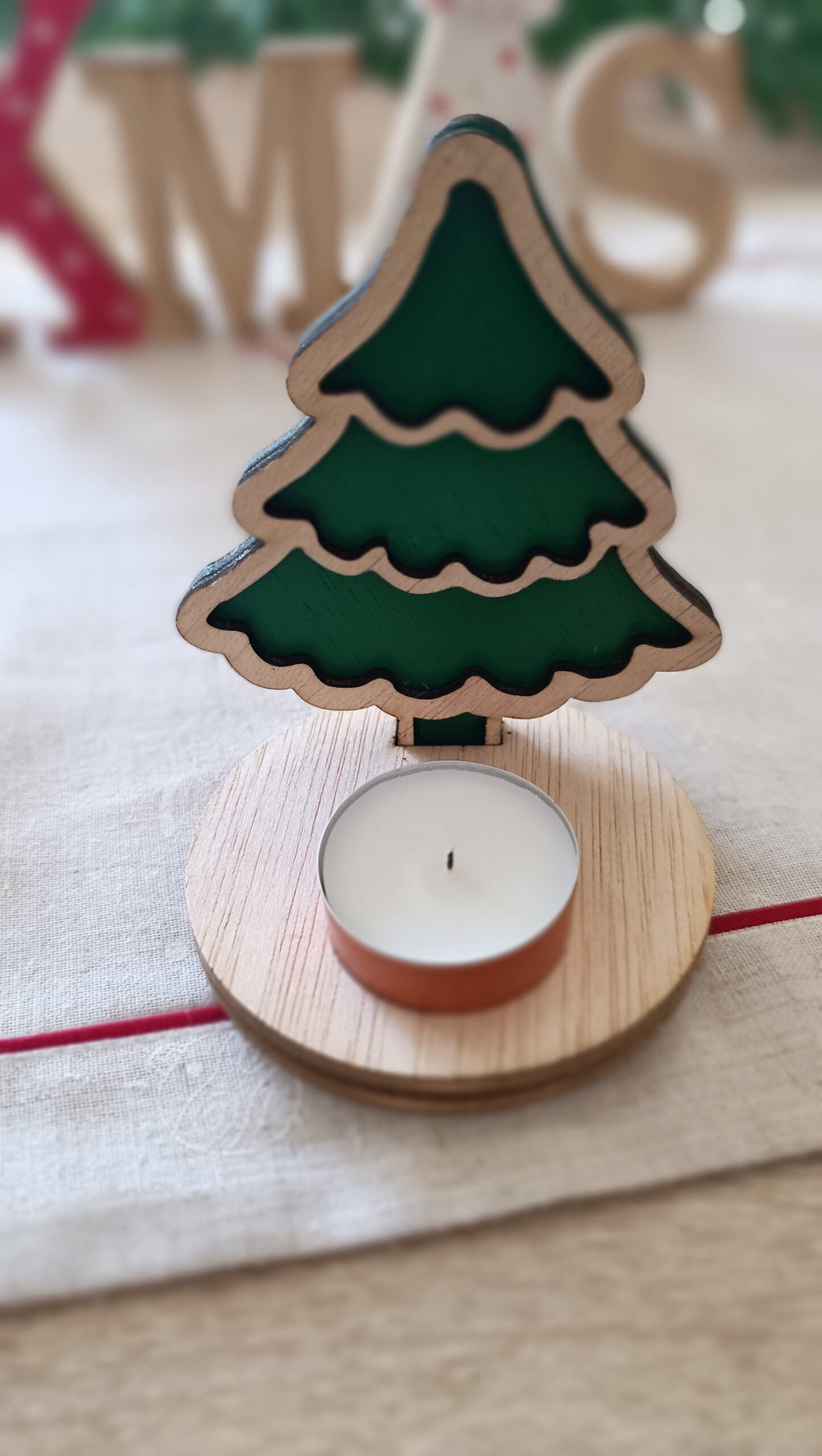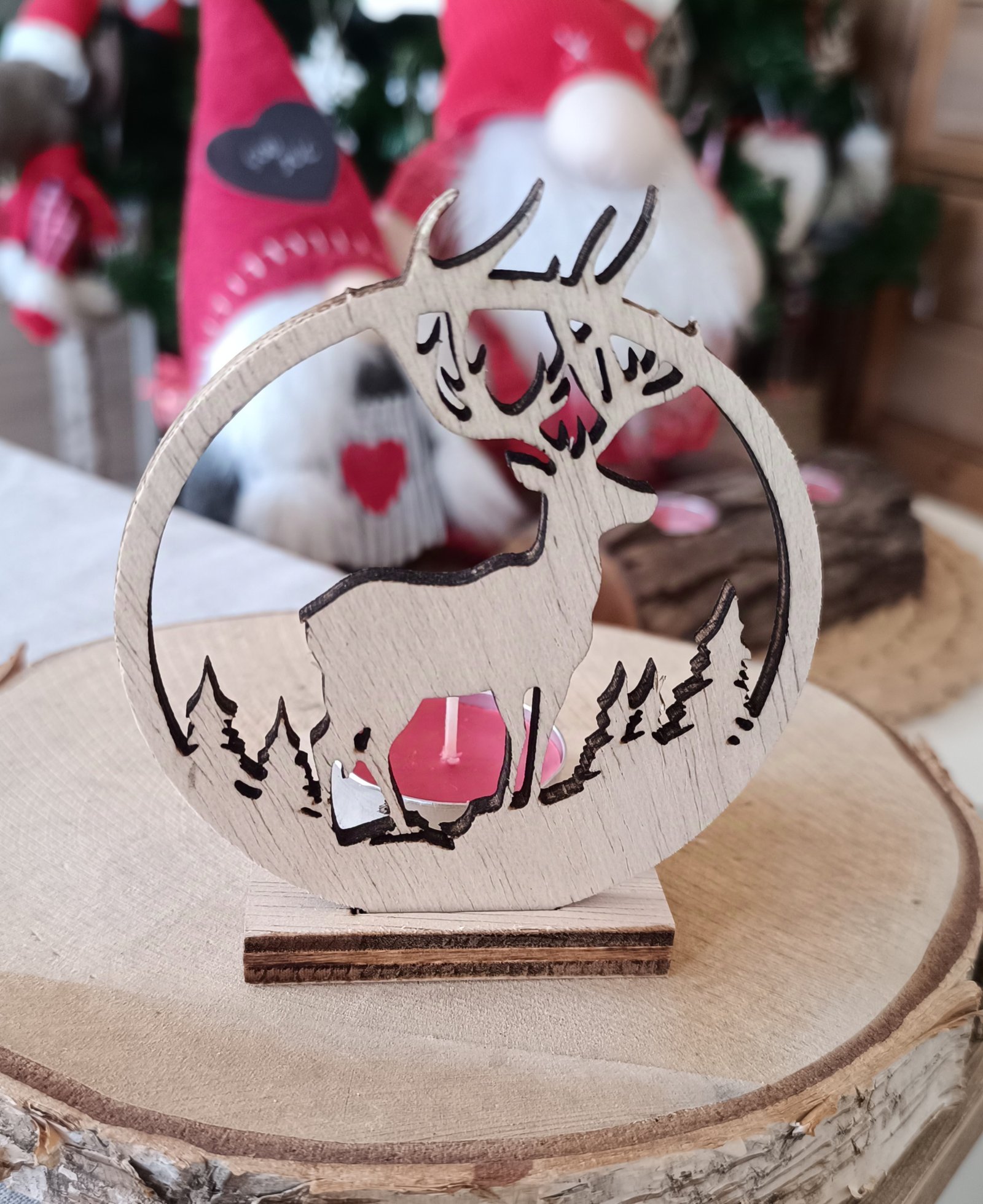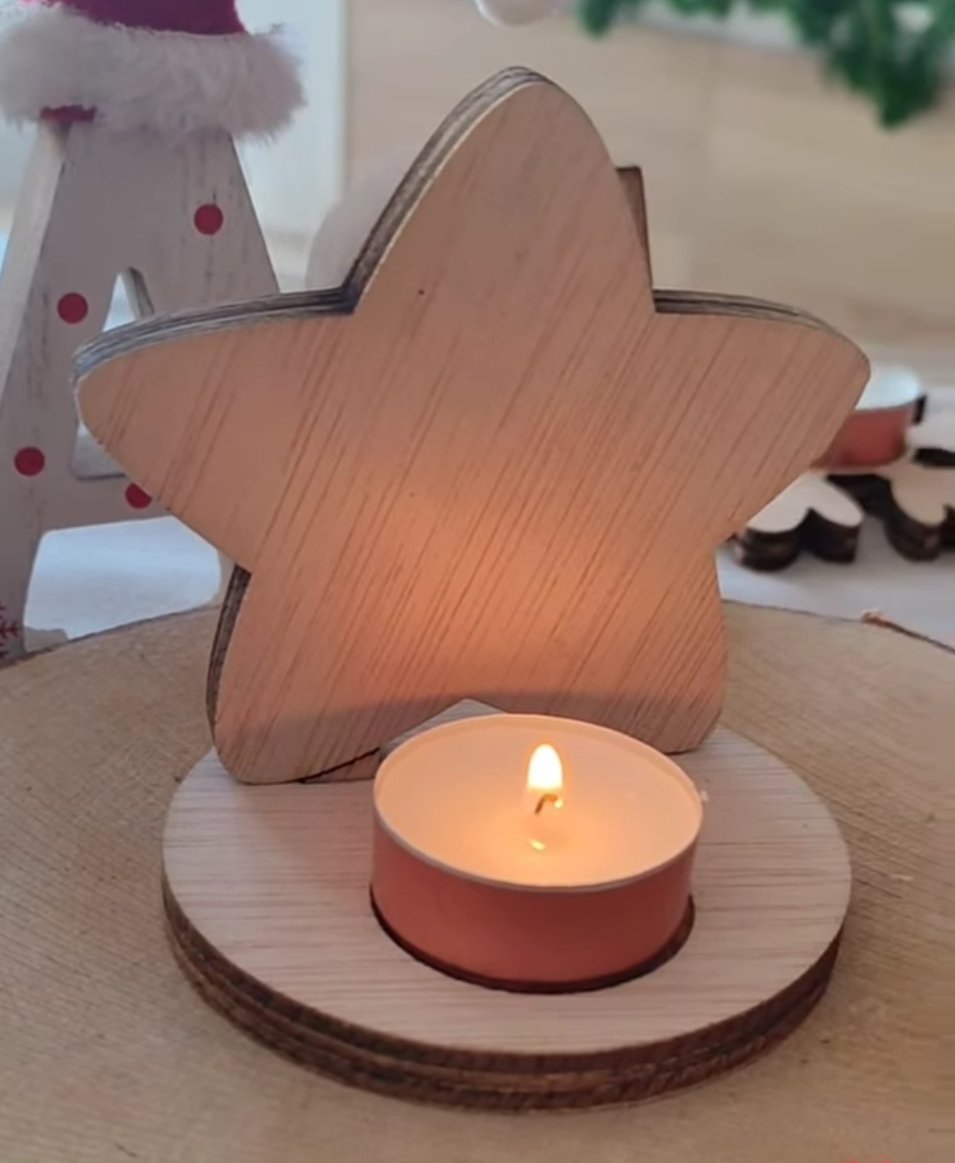 Ilumina tus noches de invierno con nuestros portavelas navideños. Diseñados en madera y con detalles únicos, sus formas de árbol, estrella y reno no solo decoran, sino que llenan de magia cualquier espacio. El portavelas de reno, en particular, crea una atmósfera especial al proyectar su silueta en la pared cuando está encendido.